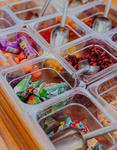 Endulza tu celebración con un candy bar curado a tu paleta y temática. Incluye montaje, recipientes, etiquetas y reposición durante el evento.