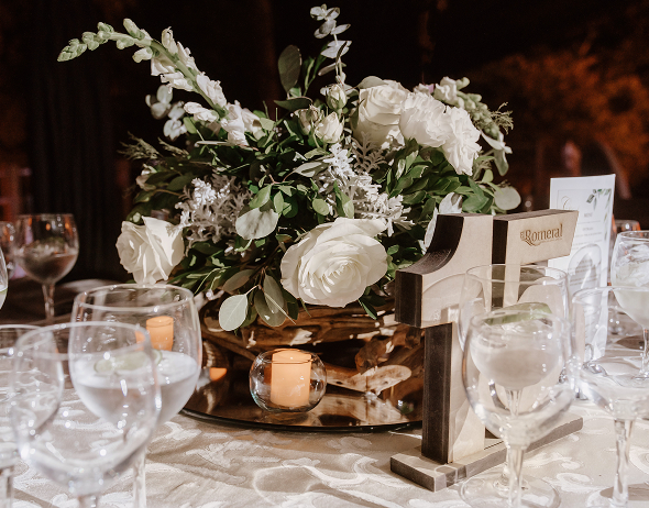 Elevamos tu concepto con diseño floral y ambientación que armoniza con lago, jardines y terraza: romántico, clásico, boho o moderno.